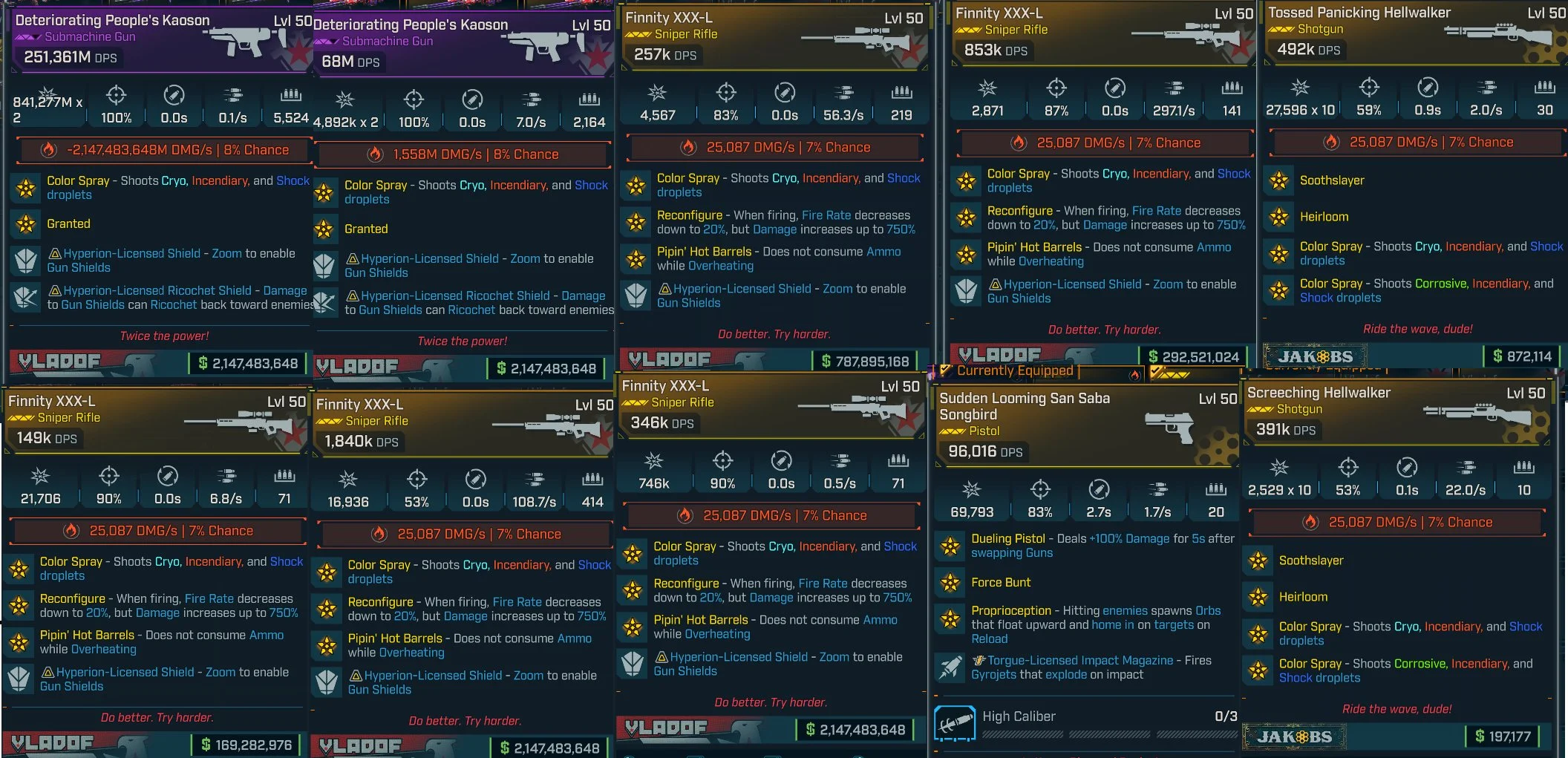 - Finnity XXX-L (High Fire Rate) – 1.84 million DPS, 108.7 fire rate (insane recoil)