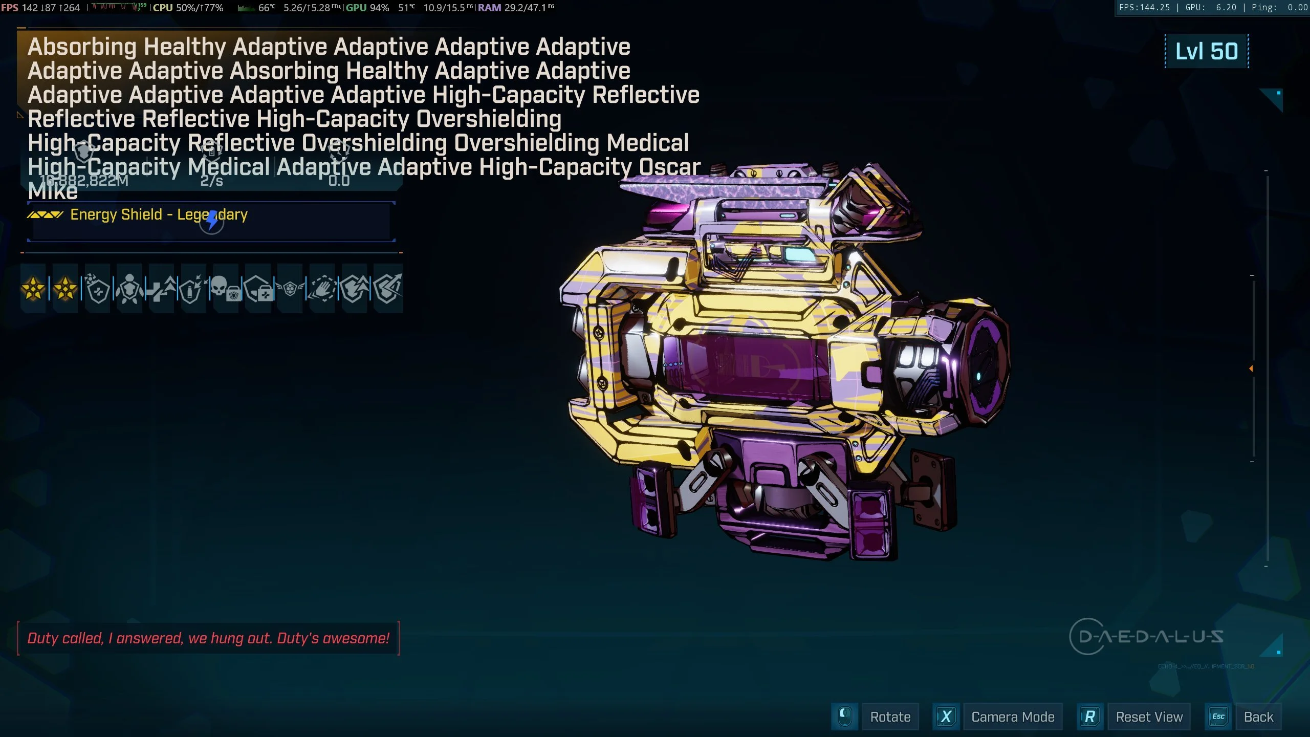 - Shield Type: Energy Shield – Legendary (Level 50)