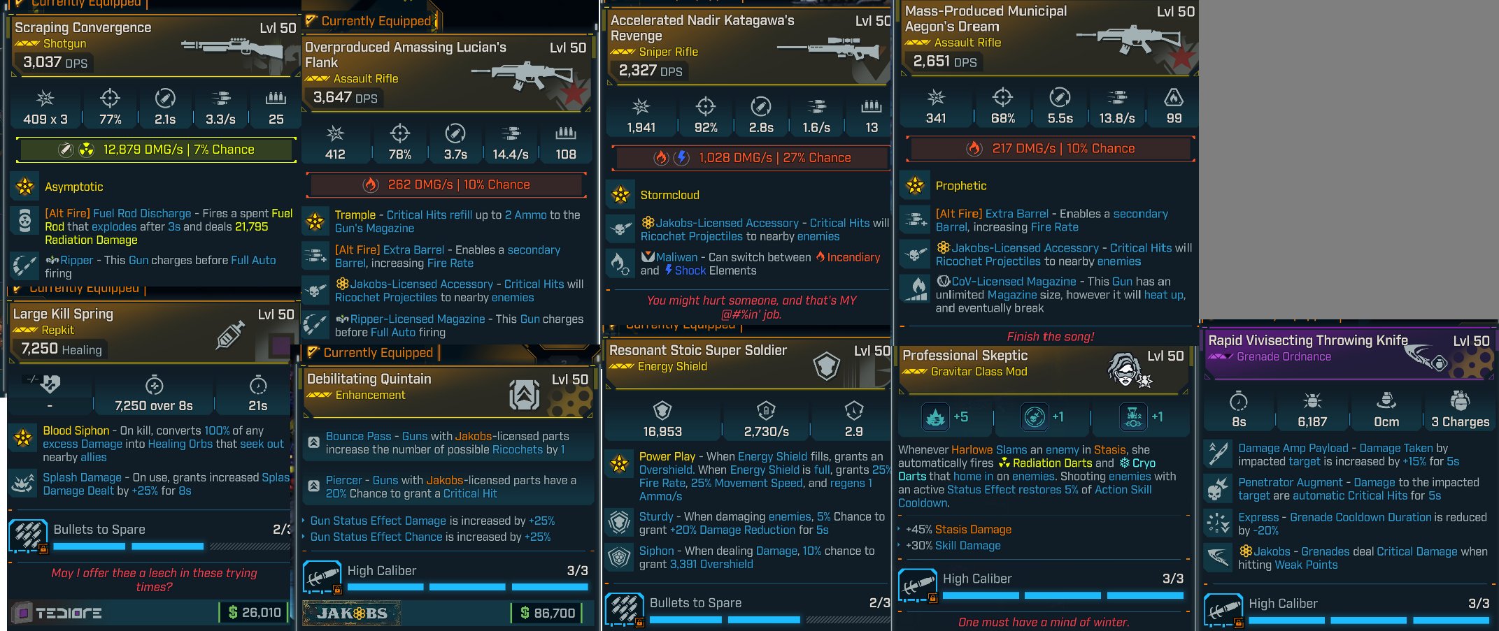 - Professional Skeptic (Class Mod) – BIS Class Mod with +5 to critical core skill. Perfect rolls for damage and cooldown efficiency.